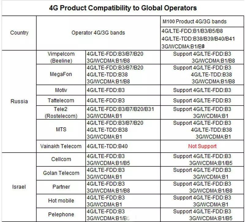 È supportata la personalizzazione delle bande di frequenza 4G per diversi paesi e regioni.